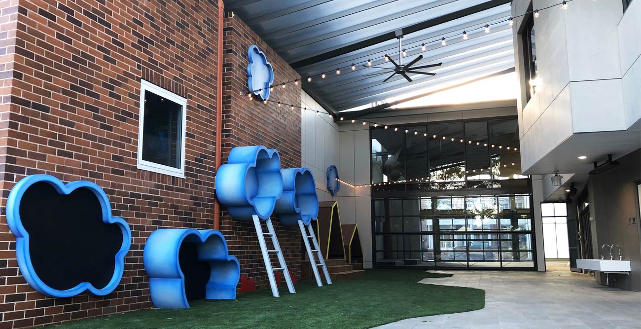The new Kurrajong Building marks the evolution of teaching facilities with classes now including entrepreneurialism, coding and social media marketing. The new facilities for the Junior School at Barker College includes a ground floor external suspended play area and classrooms over a lower carpark and an upper floor level of classrooms and administrative area.