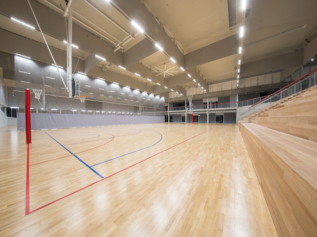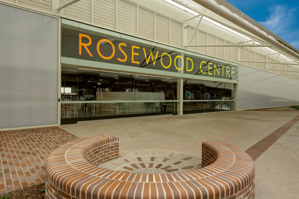 The Rosewood Centre comprises of three levels of classrooms, fitness areas and staff facilities along the southern side of the building. The ground floor predominantly houses car parking and services area, level 2 is the main sports hall floor with street access from both the east and north-western sides. This level houses five multi-sport courts and central amenities area. Level 3 has a central walkway that allows access from the north and across to the southern classroom section.