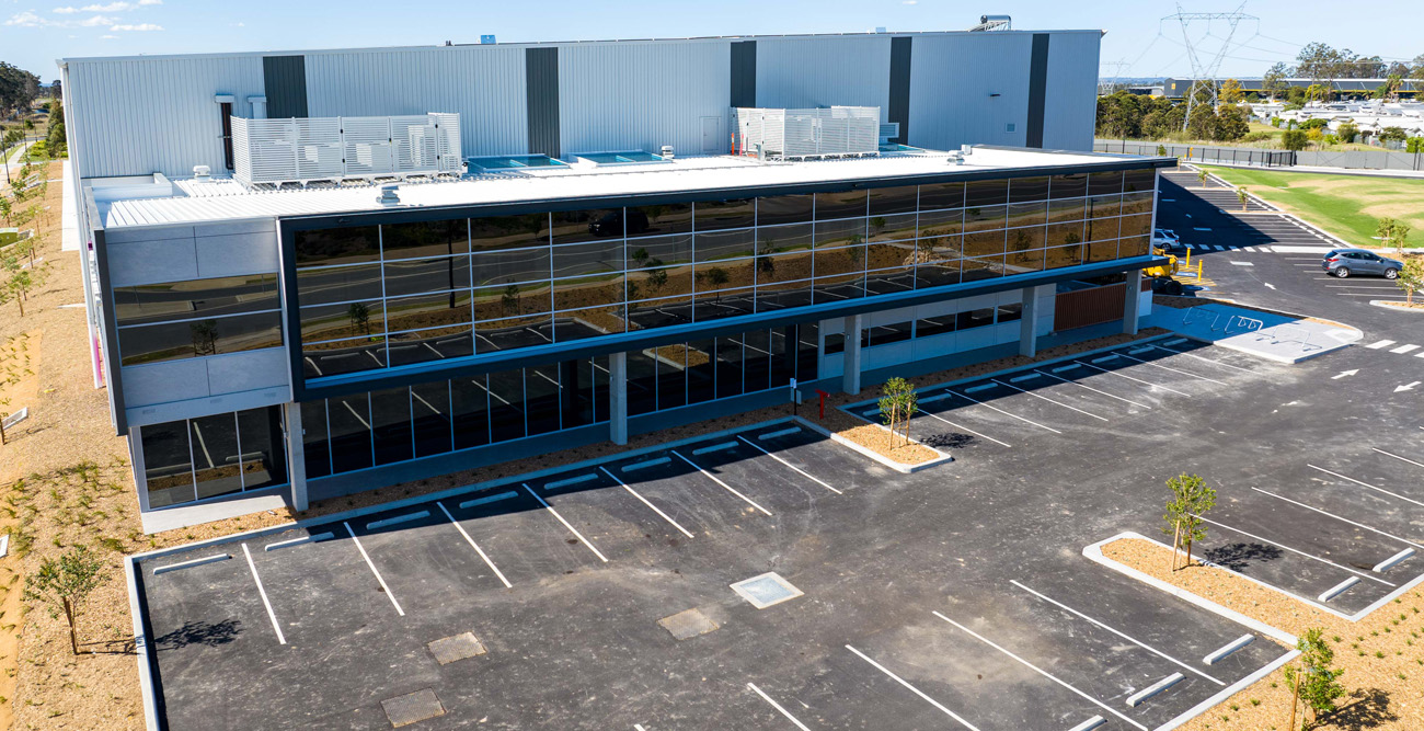 In collaboration with Sydney Business Park & Device Technologies, our fourth project for Sydney Business Park involved the creation of a bespoke facility to accommodate over 9,500 medical technologies and supplies. The completed project comprises a 15,700m2 warehouse, a two-level office spanning 1,100m2, a Dock Office, a 650m2 Reverse Logistics Workshop, and a 420m2 Technical Services area with medical gas and compressed air reticulation. Noteworthy features include two 10m high temperature-controlled storage compartments, a specialized Dangerous Goods storage area, a 300kW solar array, and a 320kVA backup generator, demonstrating our commitment to sustainability. Despite complexities and tenant changes, we successfully delivered the project within their 9-month timeframe, showcasing our dedication to meeting Device Technologies’ diverse and stringent requirements and reinforcing our ongoing success at Sydney Business Park.