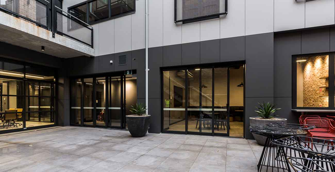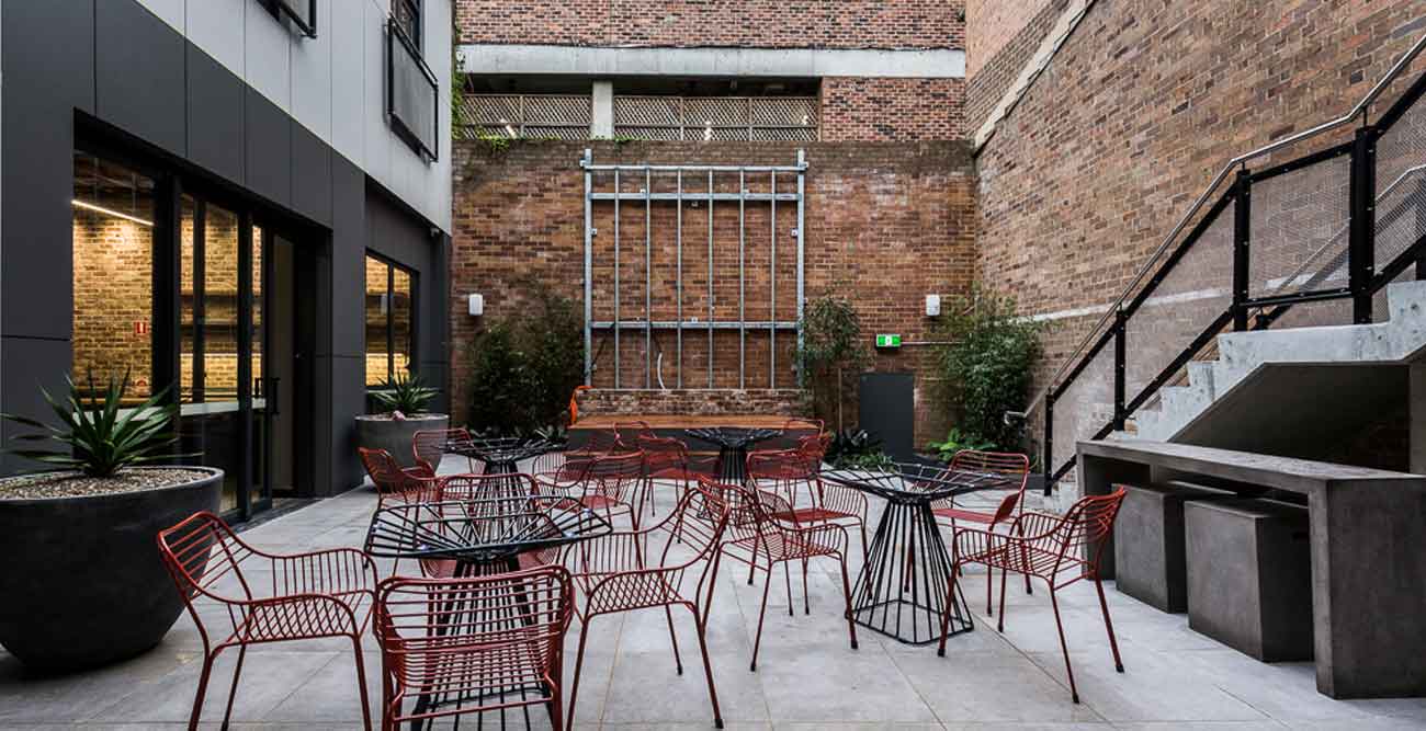 The fitout included artist studios, external courtyard and performance area, bar, breakout areas, collaborative spacings, meeting rooms and offices.